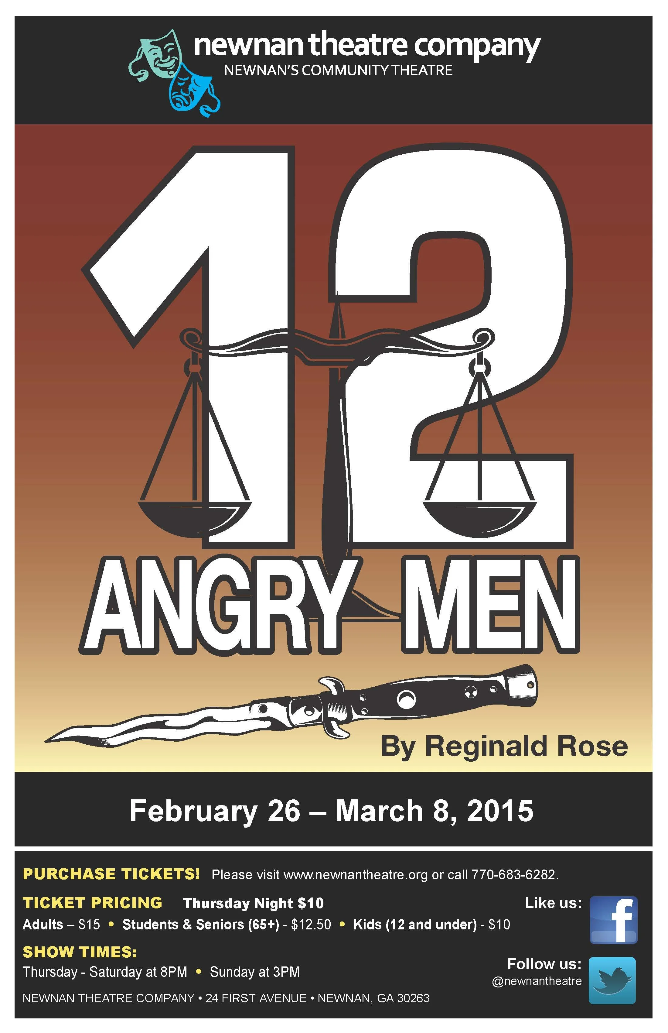 A 19-year-old man has just stood trial for the fatal stabbing of his father. "He doesn't stand a chance," mutters the guard as the 12 jurors are taken into the bleak jury room. It looks like an open-and-shut case—until one of the jurors begins opening the others' eyes to the facts. "This is a remarkable thing about democracy," says the foreign-born juror, "that we are notified by mail to come down to this place—and decide on the guilt or innocence of a person; of a man or woman we have not known before. We have nothing to gain or lose by our verdict. We should not make it a personal thing." But personal it is, with each juror revealing his or her own character as the various testimonies are re-examined, the murder is re-enacted and a new murder threat is born before their eyes! Tempers get short, arguments grow heated, and the jurors become 12 angry men. The jurors' final verdict and how they reach it—in tense scenes that will electrify your audience and keep them on the edge of their seats—add up to a fine, mature piece of dramatic literature, an experience you'll be proud to present.